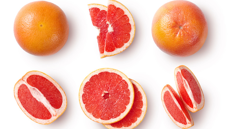 Very Well Fit says grapefruit is a hybrid between an orange and pummelo. The citrus fruit is white, pink, or red on the inside and the skin can be thin or thick. Grapefruit is low in calories and high in vitamin C and fiber. Florida Citrus lists grapefruit as being fat-free, cholesterol-free, and sodium-free. Perhaps this is why grapefruit is popular among those mindful of their diet — hence the grapefruit diet, which claims enzymes from the fruit help to burn fat (via Web MD).