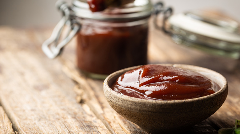 Barbecue sauce has a lot in common with ketchup — both use tomato, vinegar, and sugar as their base. But barbecue sauce takes it up a flavor-packed notch. Often, the brisket-topper includes a variety of spices, a kick of fiery heat from peppers, that umami-heavy "secret" Worcestershire sauce, and liquid smoke. Barbecue sauce also typically gets its sweetness from slow-cooked molasses or brown sugar instead of cane sugar, which also imparts a dark, rich flavor.