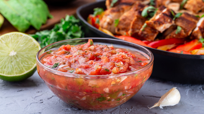 Salsa is much more than just a condiment. At its core, it may not be the obvious substitute for ketchup, as salsa tends to be more savory than sweet. But there's nothing better to top shrimp, beef, or chicken tacos with. It adds a fresh and spicy liveliness to scrambled eggs and vegetable frittatas, too. It also lends a warm piquant essence to meatloaf, hamburger steaks, or grilled tri-tip.