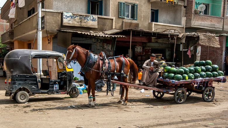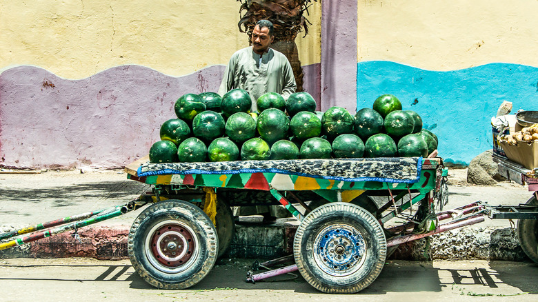According to a genetic study published in 2019 by researchers at the University of Munich, Egyptians were planting, harvesting, and enjoying watermelons that were similar to what we eat today more than 3,500 years ago. There are even illustrations on ancient Egyptian buildings that depict the oval-shaped watermelons with bands of dark and light green running along them (via New Scientist). It's hard to say what these ancient fruits would have tasted like, but researchers believed they would have been very close to a modern watermelon thanks to a few clues found in their genetic code.
