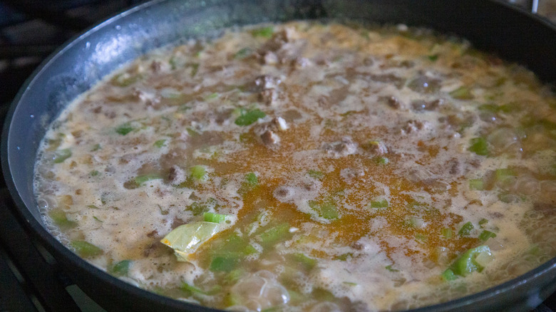 There's one more ingredient Shungu uses here that she says is not typical for dirty rice: beer. While you can use any kind you like — she suggests "a regional beer such as Abita [could] make it extra authentic" — a lighter-bodied beer such as a lager would work best here as opposed to a IPA or dark stout, which could overpower the rest of the flavors.