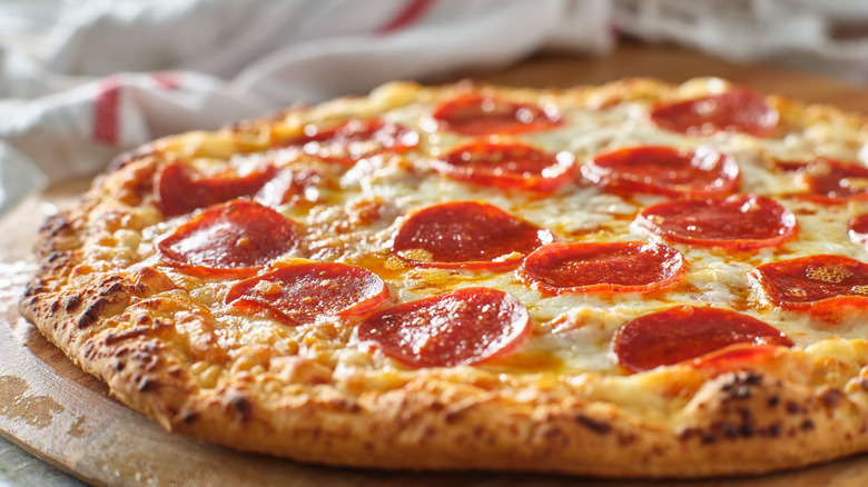 Helping to fuel sales of frozen pizza is the sheer variety from which to choose: pepperoni or vegetarian; deep dish or thin crust; extra cheesy or no cheese. The varieties of pizzas available in the frozen food aisles continue to increase to meet different dietary restrictions and diets, according to Baking Business, from gluten-free crusts to Keto diet-friendly pizza. While choosing which pizza out of the many kinds available at your area grocery store can be challenging, baking it shouldn't be. Even though the cooking directions are fairly simple, often the end result is a messy let-down. The good news is there is a trick to help you get a better frozen pizza from the oven.