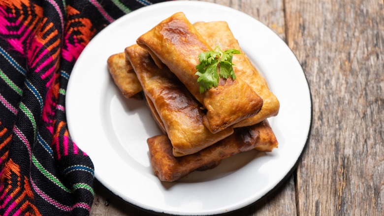 Carne seca, Spanish for "dried meat," is essentially jerky (per Honest Food). Before stepping into El Charro's restaurant, you can't help but notice a metal cage of the meat dangling outside. Making carne seca is a labor-intensive process. Thinly-cut beef is first marinated in garlic and lemon juice, left to dry, then oven-baked, shredded into pieces, and sprinkled on top of dishes (via Atlas Obscura).
