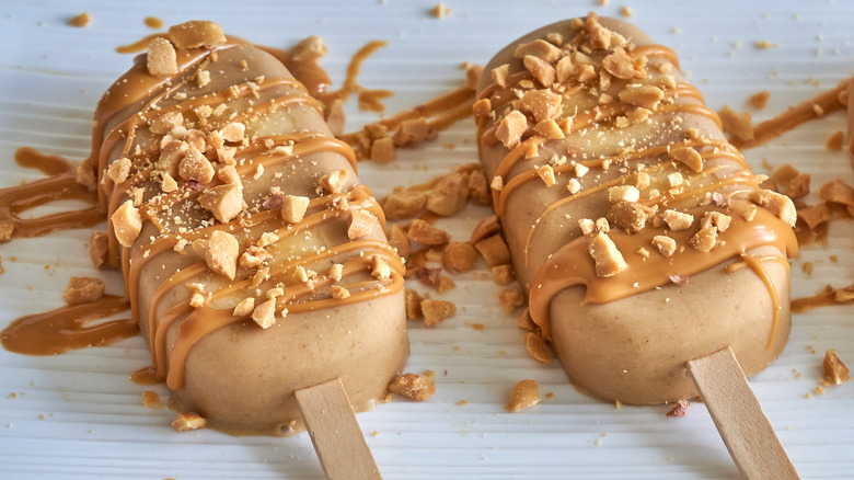 For a more molten topping, House of Nash Eats recommends adding ½ cup of creamy peanut butter, ½ cup of sweetened condensed milk, 5 tablespoons of milk, and 1 teaspoon of vanilla extract to a saucepan over low heat until thickened. For a dairy-free alternative, GoDairyFree suggests combining creamy peanut butter with melted coconut oil, maple syrup, confectionary sugar, and salt. For a chocolate peanut butter topping, add melted dark or milk chocolate to your peanut butter topping and stir until combined. This homemade peanut butter topping can be used on a ton of baked goods and sweet treats aside from ice cream including pancakes, brownies, and pizookies.