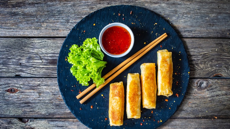 To make a dipping sauce for spring rolls, Casa Lago Tasting Room recommends combining 1 cup of creamy peanut butter, lime juice, soy sauce, sriracha, and brown sugar in a serving dish. The sauce can be left in the fridge for several days making it a great match for lunchtime spring rolls during the week. Taste of Asian Food recommends adding spices like freshly grated ginger or garlic, which can add a spicy sensation to the spring roll (we're drooling already). Sesame oil can provide a new savory depth while maple syrup can provide a sweet undertone to the peanut sauce. Whatever variant you choose it's bound to be delicious.