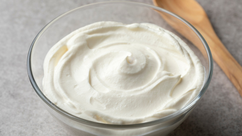 Despite its luxurious, exotic-sounding name, crème fraîche is made from fairly simple staple ingredients. Crème fraîche is fresh heavy cream that sours in the presence of added bacteria cultures — similar to how yogurt is made, via Food Network. According to Master Class, what makes crème fraîche so versatile is its nutty flavor and high fat content. The nutty flavor provides a complementary base for most spices and other condiments without overpowering their flavor profiles, and the high fat content means it works well as a thickener that won't curdle in hot dishes.