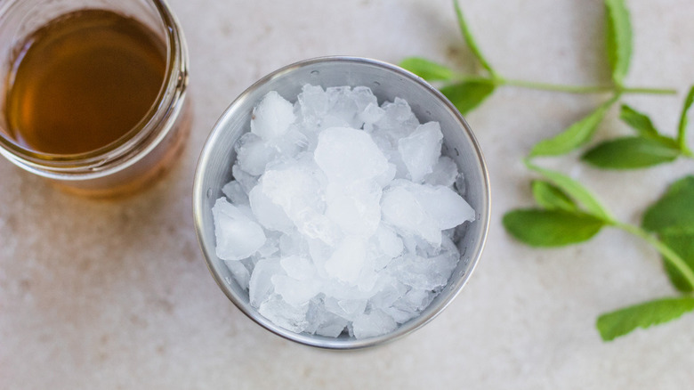 Once you use the amount of mint syrup needed for the drink, you'll still have quite a lot of the stuff left over. Shelbert suggests that you could use it as an ice cream topping or in tea (hot or iced), or you could use it for other minty cocktails or mocktails such as mojitos. In fact, Shelbert even gives us a simple minty mocktail recipe, saying that she likes to mix it with "sparkling water with a twist of lime or lemon." For this recipe, however, you'll be putting that mint syrup to good use in a classic mint julep — so let's dive right in.