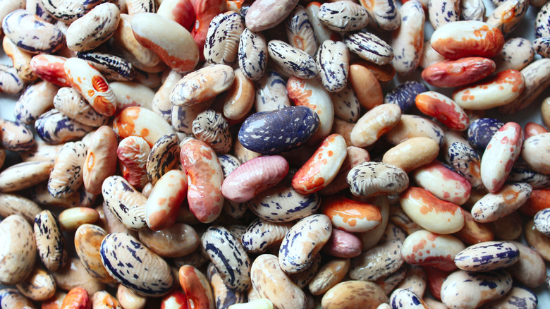 When it comes to using dried beans, there may be many months to several years in between the plant's harvest and its arrival onto your dinner table. Dried beans are an incredibly economical choice, costing a mere $.08 per serving for pinto beans compared to $.34 per serving for its canned counterpart in 2015 (via Bean Institute). When using any dried variety of bean, first begin by rinsing the beans under a cold faucet to remove any dirt or dust. Then, spread them out onto a tray and, using your fingers, sort through the beans in search of pebbles, sticks, leaves or whatever else might have snuck in during the picking, drying, and packing process.