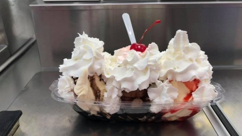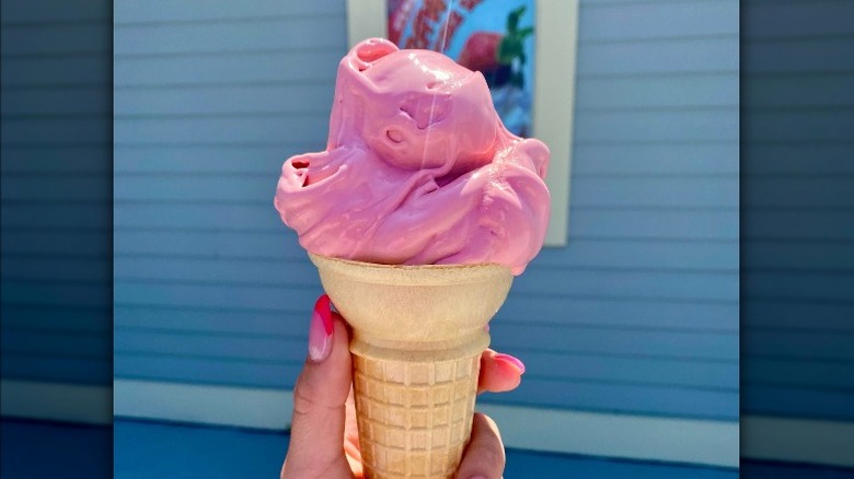 Its add-in and mixers are off the charts, with some concretes featuring actual swirls of cake batter. They also have "The Pink Poodle," a sweet, summery sundae featuring premium custard, strawberries, and bananas. The only bummer is the accessibility — although Shakes Frozen Custard is now in nine states (via website), you probably won't be able to pick up a pint at your local store. This puts Shakes Frozen Custard lower on the list, but that doesn't mean that you shouldn't stop in for one of its dense concretes, classic splits, or cleverly-named sundaes if you find yourself in one of the states it serves.