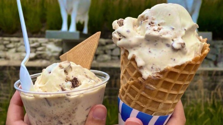 The Buffalo News calls Anderson's Frozen Custard the "OG of ice cream places," with several brick-and-mortar locations, a food truck, local delivery options, and even nationwide shipping through Goldbelly. Although it is accessible to people across the country, undeniably delicious, and a staunch Buffalo tradition, Anderson's Frozen Custard lacks some of the more creative flavors that other shops on our list have. As a result, it's made a good showing on our list but isn't a top choice.