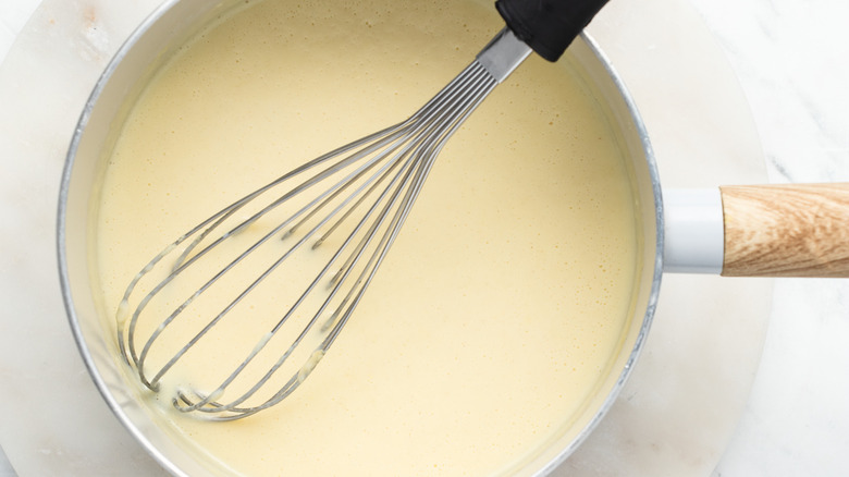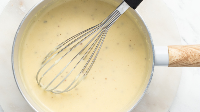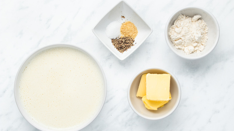 To make this gravy, you'll need flour, butter, and milk, plus salt, pepper, and onion powder. While Brookes favors using whole milk here, if this isn't the kind you tend to use on a regular basis, there's no need to buy a carton just for this recipe. She says it's perfectly okay to use whatever type of milk you like, adding that the gravy "may be slightly less thick, but you can adjust the quantity of milk if needed."