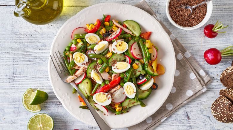 Soaking allows you to rinse your produce without bruising the delicate leaves of greens, chef Cara Chigazola-Tobin explains to The Kitchn, and is a gentle way to clean crunchy root vegetables as well. Just because we buy our produce from grocery stores or farmers' markets does not mean that they've been washed properly since they left the farm. Often, the veggies used in salads like Swiss chard and kale still have dirt or sand stuck between their leaves or on their skin which must be removed before you can enjoy them — and who hasn't found a little grit in the crevices of a carrot? The soaking method (combined with a little shake) releases dirt trapped on the veggies and allows it all to be gently scrubbed away (via Food Network). Using cleaner vegetables is the first step to a more delicious and refreshing salad.