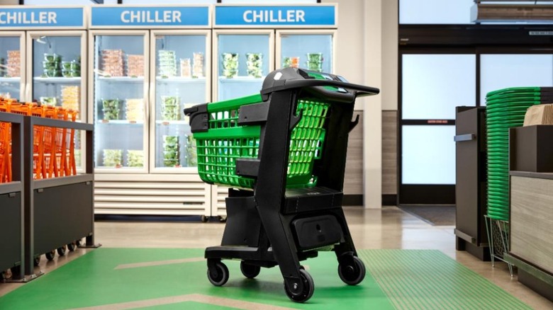 If ever there was a device that was desperately overdue for a makeover, it is the shopping cart. Since store owner Sylvan Goldman first came up with the idea for the shopping cart in Oklahoma City in 1939 and Orla Watson figured out the "nesting" feature that allowed carts to easily fit together for storage purposes in 1946 (per Shopify), not much has happened in the way of shopping cart evolution. Until Amazon's Dash Cart, that is. Amazon's Dash Cart isn't just a makeover or merely a tiny step in shopping cart evolution. It's a quantum leap forward. And if you haven't tried one yet, your chance may be coming soon.