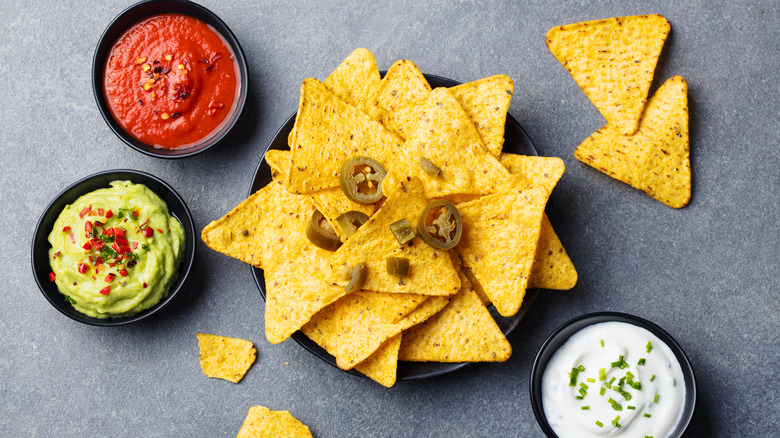 You can even serve up a nacho bar with an array of toppings like charred tomato salsa, pineapple salsa, sliced skirt steak with avocado crema, and simple grilled shrimp. The key is to keep any toppings that could make your nachos soggy separate so you don't have sour cream pooling in the bottom, with chips drenched in a watery sauce. Foolproof nachos begin and end with crunchy tortilla chips.