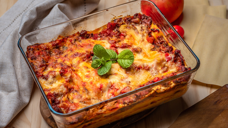 One of the main challenges when baking lasagna yourself is controlling the perfect level of moisture. According to Bon Appétit, you want to make sure the noodles don't dry out, but you also don't want them to get soggy. They suggest covering the dish while baking and adding a béchamel sauce, but if your lasagna still comes out a bit dryer than you'd like, here's a trick to add some moisture back in.