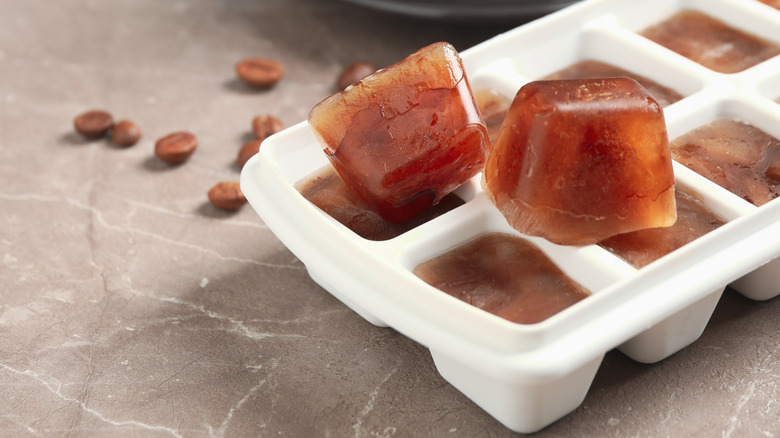 For those who enjoy sweet java drinks, Full Coffee Roast recommends mixing a few tablespoons of sweetener or flavored syrup into two cups of brewed coffee, then pouring the mix into ice cube trays and freezing. Craving something creamy? Sweetened condensed milk adds a velvety twist to the coffee cubes. Customize your frozen cubes by adding as little or as much sweetener, flavorings, or creamer you desire to the cubes before freezing. As they melt in your iced coffee, the cubes release all of the delicious flavors into your drink.
