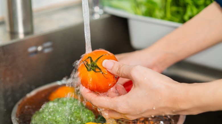 In short, food contamination, unfortunately, happens a lot, including with tomatoes. With this in mind, whether you are cooking your tomatoes or eating them raw, don't forget to wash them first. In fact, even if they're grown locally, or are organic, they can still have residues of pesticides and other harmful substances — like dangerous bacteria — so rinsing is always vital. The FDA recommends that following other hygienic steps, like washing your hands thoroughly before cooking, and storing foods at the proper temperatures, are also essential to practice, and can help prevent any food-borne illness from occurring.