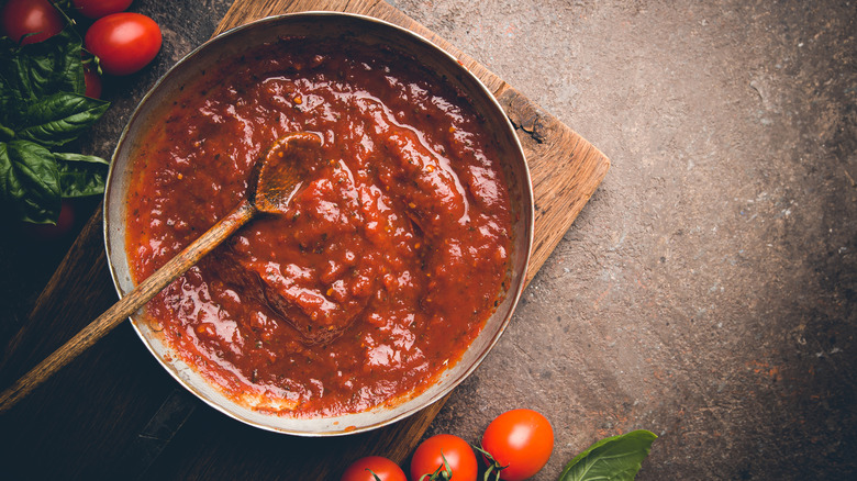 Cast iron is considered one of the most reliable materials with which to cook. Well-made cast iron is versatile and strong, and with proper care, it can easily last decades. That said, it can impart iron into the food you are preparing, a process that is more likely to occur with acidic foods like tomatoes (via Livestrong). While a little iron is in most cases not too harmful — and besides, a well-seasoned cast iron pan is less likely to leach any iron at all — you can avoid all this by using a non-reactive pot or pan when cooking tomatoes.