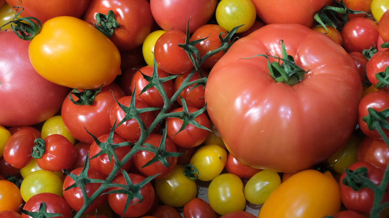 Tomatoes can hold their own solo, but you may want to consider seasoning them and choosing herbal accompaniments that will complement the rich, sweet, and savory taste of the fruit. One of the best ways to do so — particularly in summer, when you can get them fresh — is by using herbs like basil, thyme, oregano, rosemary, and marjoram which pair deliciously with tomatoes, helping to bring out the earthy notes in the fruit. In fact, it's very popular to grow tomatoes alongside basil, as the two types of plants may have beneficial effects with respect to each other: some think that basil's smell deters insects that might damage tomato plants (via SFGate).