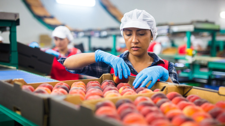 Peaches are truly a treat for all seasons (even if that means freezing them during off months), and this timeless crop has been a timeless favorite. In fact, the ancient origin of the peach stems from the stone age — well, not quite that far back. However, Clemson University says there is recorded evidence of peach farming dating around 500 B.C. The earliest domesticated peaches, it says, were grown in China — which is still the largest peach-producing country in the world today (per World Atlas), followed by Spain, Italy, Greece, and the United States. In 2021 alone, the U.S. produced over 688 thousand tons of peaches, according to data analytics platform Statista. Here's the most common peach color you'll find in the U.S.