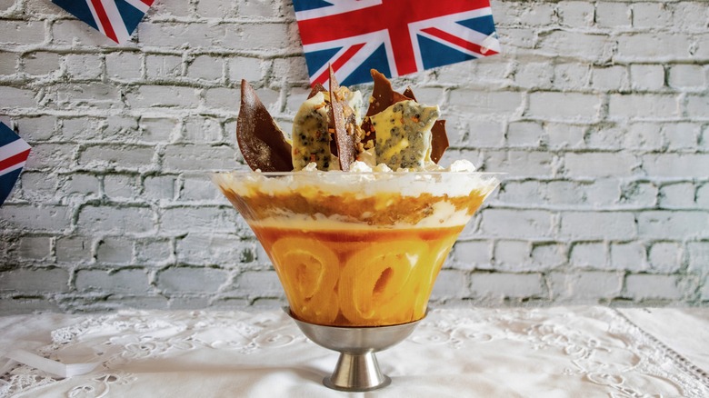 An English dessert, called a trifle, became popular in England in the mid-1700s. Taste of Home explains a trifle was made simply by layering fruit, bits of sponge cake soaked in alcohol, and custard into a bowl. The desert was named for its ease of assembly –- a trifle meaning unimportant.