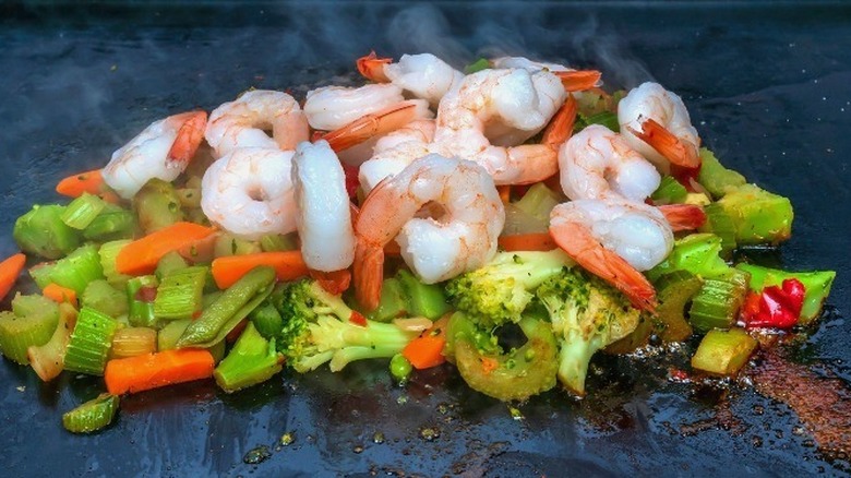 A stir-fry is a great way to show off the versatility of a griddle. There's a good chance your recipe will call for a wok, the round-bottomed pan that is used often in Asian cuisines to cook vegetables and other ingredients quickly using very high heat. The large surface area of the pan allows for even browning and searing stir-fry ingredients. But some of the same techniques used for cooking a stir-fry in a wok can also be pulled off on a griddle.