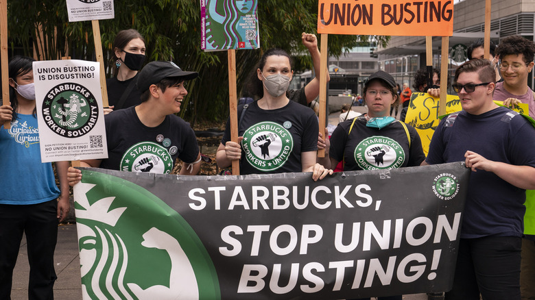 Starbucks told CNN that it is not currently engaged in a "formal sales process". Regardless, times have been turbulent for Starbucks as of late, with a major push for unionization among U.S. locations making news last summer and fall (via The Wall Street Journal) and prompting harsh criticism from its reputedly anti-union interim CEO. One of the company's most public faces in attempting to curb unionization, North American executive vice president Rossann Williams, exited last month (via Nation's Restaurant News), and in April, the company was sued by the National Labor Relations Board for allegedly retaliating against three workers who had helped to organize a union (via NPR).