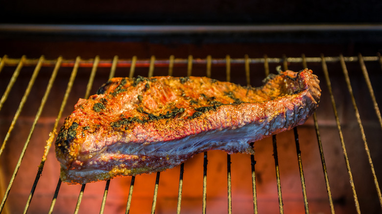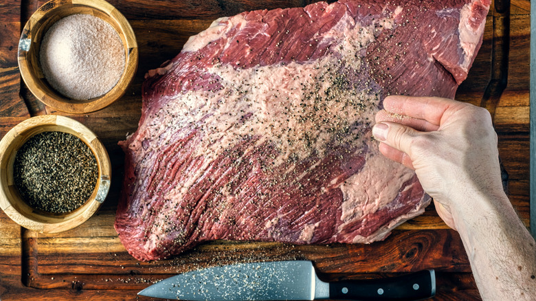 The same collagen-rich connective tissues that can make the cut tough are rendered down by slow cooking methods (per Steak School by Stanbroke) and can eventually make your brisket tender enough to shred with two forks. So, let's consider what portion of the whole might be the best choice for your next brisket feast.