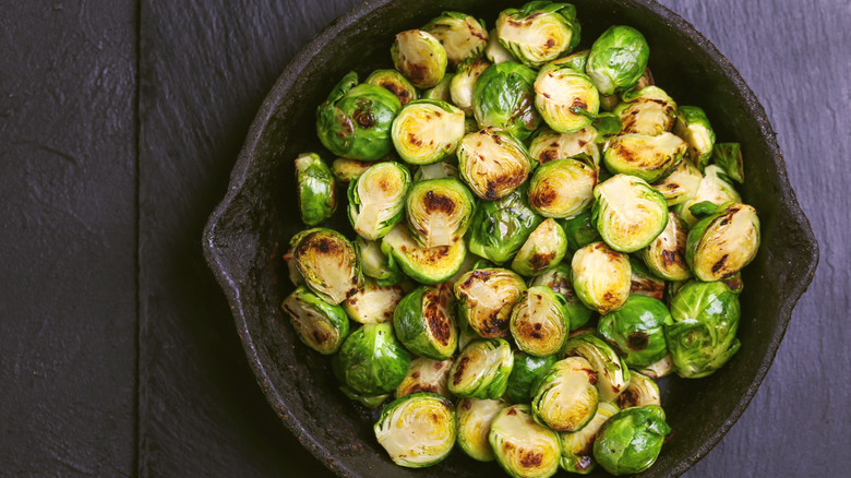 Brussels sprouts have made a comeback, and it's all thanks to the crispy, caramelized, sweet flavors that roasting brings out of them (via Chicago Sun-Times). A nicely roasted sprout puts its old preparation to shame, replacing the funky smell and slimy texture they used to be attributed to with something much more appetizing. With roasted Brussels sprouts appearing on the menus of 25% of restaurants serving American cuisine (via Tastewise), it's easy to get them prepared just right. However, roasting Brussels sprouts at home proves to be more of a challenge.