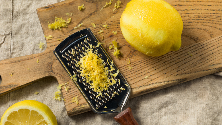 This part, known as the pith, is very bitter and will add that astringent flavor to your food. In a pinch, you can also use a box grater to remove the zest. Give the lemon a few swipes across the holes then check to see if you've reached the pith before moving on to a new patch. Once you've used the zest, you can either juice the lemon or save it for later. The zest protects the outside of the lemon from drying out, so keep it in the refrigerator wrapped in plastic until you're ready to use it.