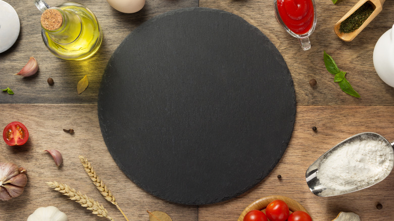 Food Network says pizza stones exist because home ovens do not get hot enough to get some crisp on the crusts. These stones absorb and retain the oven's heat, providing the crust with the scorching temperature it needs to crisp up and cook evenly. In addition to absorbing heat, the stone's ceramic material also draws in the flavors and odors of the foods placed on it (via Food Network). So be mindful of the ingredients you put on your pie. No one wants to taste onion and anchovies forever.