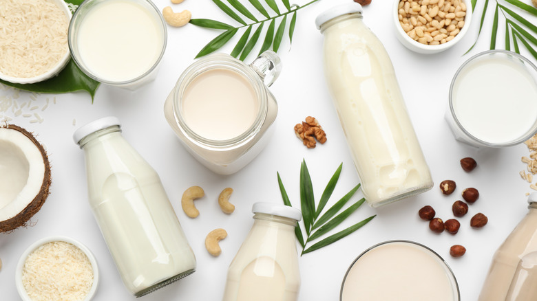 Although almond milk has long been hailed as the essential non-dairy milk substitute, oat milk is rapidly on the rise. Forging its own path in the alternative dairy realm, oat milk consists of some combination of oats and water, as well as whatever a brand may choose to add. Many companies, from Oatly to Silk, have come out with a respective take on the milk. Shoppers now have their choice of oat milks that range from coffee creamers to vanilla-flavored iterations. You can even make your own version at home; simply blend oats, as well as fat via a neutral oil, with water and your choice of sweetener.