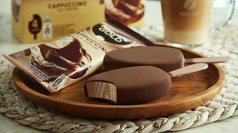 The patented "soft coating" ganache allows the outer chocolate to melt at the same time as the ice cream inside, giving customers the satisfaction of a smooth bite every time (via Nestlé). The flavor of Nescafé Gold coffee will be infused in the ganache and each ice cream bar will be covered in a recyclable wrapper.