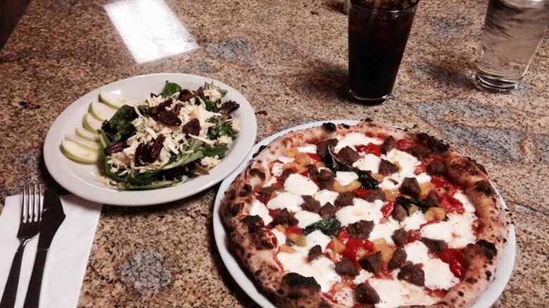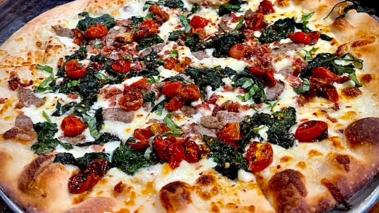 The menu might be limited, but the choices are solid and tasty, from the standard pizza pie to the cheese-heavy and herbaceous white pie. Of course, you can also opt to make your own with a slew of standard and premium toppings. Customers here will also enjoy the doughy and crisp garlic-infused crust that's completely gluten-free (via Find Me Gluten Free). With a laid-back atmosphere, huge beer selection, and tasty menu of standard and gluten-free pies, you simply can't go wrong with this place.
