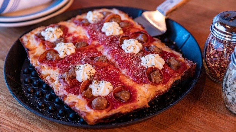 According to The Gothamist, Emmy Squared Pizza took another forward-thinking step by offering an alternative to its thick focaccia-like squares. Instead, you can opt for a rice-flour-based gluten-free crust with the same heft, taste, and mouthfeel as the original stuff. Best of all, gluten-free diners can swap rice-flour crust for the traditional one in any pie. Emmy's Squared Pizza takes the guesswork out of ordering gluten-free with its all-inclusive menu of options — it's a massive gift to gluten-free diners and something that will surely continue to keep them ahead of the competition.