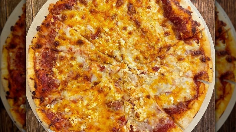 Razzi's four cheese pizza is a celebration of all things gooey with tons of swiss, mozzarella, feta, and parmesan slathered on top. If you're a feta fan, the Fetos pizza has you covered with bright tomatoes, onions, and of course, plenty of tart-and-tangy feta cheese. In addition, there are mushroom options, pies for meat lovers, and even an NW Mex pizza with beef, peppers, and a hearty sprinkle of cheddar cheese across the whole pie.