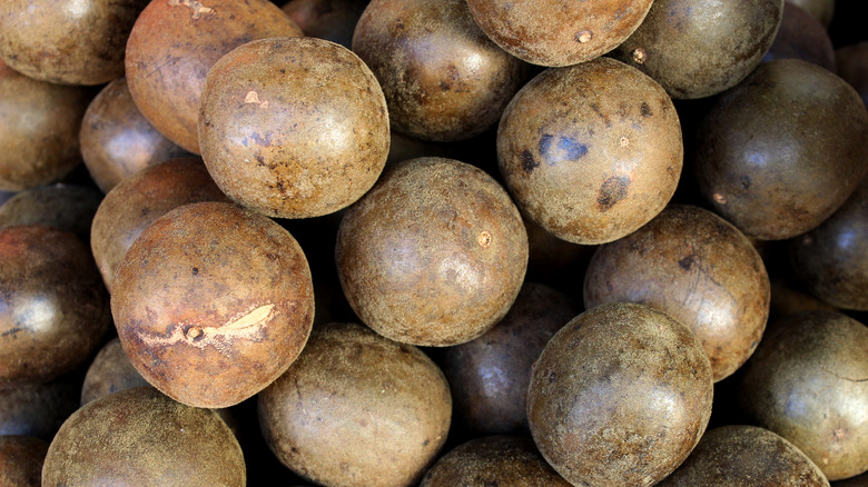 Monk fruit sweetener is an alternative to sugar that, like other sweeteners, is metabolized differently in your body (via WebMD). Earning its name from the 13th-century Buddhist monks in southern China who originally cultivated it (via Healthline), the small, round, melon-like fruits belong to the same family as gourds. The fruit itself is rather unappealing, ranging in color from brown to green, but a unique treasure is found within that gives it its sweet flavor.