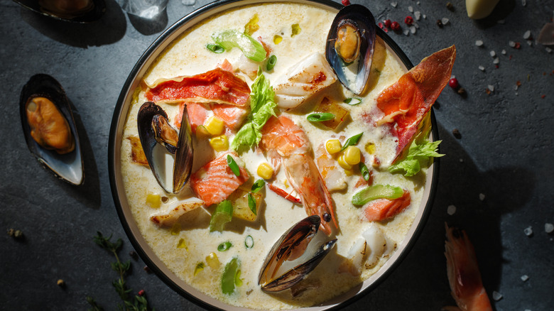 There are several versions of clam chowder up and down the North American coastline from Maine to South Carolina. Different chowder recipes are specific to different regions. For example, Manhattan clam chowder is famous for its red tomato base.At one point, the variations of chowder became such a hot-button topic that a politician in Maine tried to make it illegal to add tomatoes to New England chowder out of contempt for the Manhattan version (via New England Historical Society).