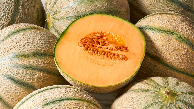Turns out, cantaloupe and the seeds are pretty amazing for you, and have a longer shelf life than most people think. Kidadl states that the seeds are not only packed with a significant amount of vitamins such as vitamin K, vitamin A, vitamin E, vitamin C, zinc, magnesium, potassium, selenium, and fiber, but they also act as an added source of protein for those on a plant-based diet. Studies show that cantaloupe seeds rival soy milk in terms of protein content (via Livestrong). In fact, according to Cook'n, 100 grams of cantaloupe seeds contain 21 grams of protein — to compare, a 4-ounce hamburger patty contains 28 grams of protein.