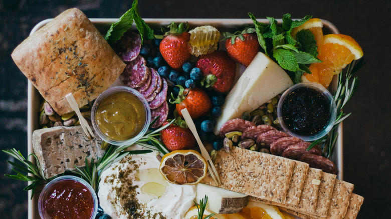 No charcuterie board is complete without a little something sweet. As "Top Chef" contestant Malika Ameen explained to Eater, "Salt is a flavor enhancer, and when it's correctly combined with something sweet, it creates flavor layering." In other words, sweet (cue the acai) and salty (cured meats, cheese) flavors are a match made in heaven.