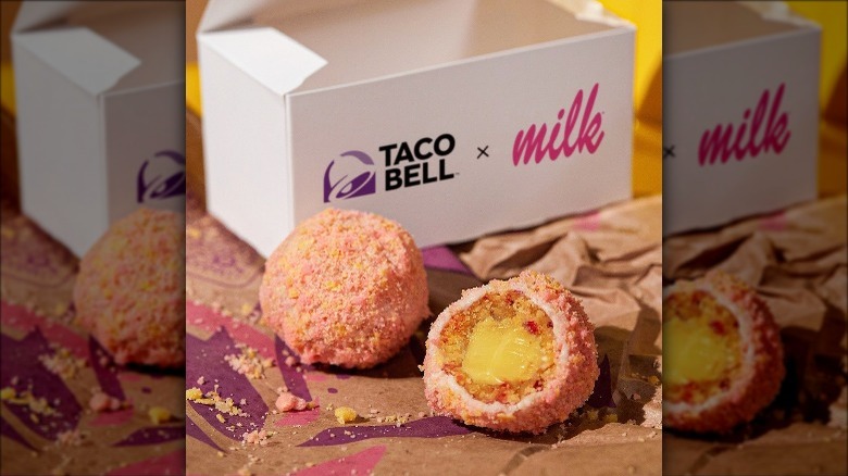Dessert probably isn't the first thing to mind when you think of Taco Bell. While the fast food franchise's menu does feature two signature sweets — Cinnabon delights and cinnamon twists — savory food is really what Taco Bell does best. That may soon change, however, given that Taco Bell has partnered with upscale New York bakery, Milk Bar, to create a one-of-a-kind dessert (via Taco Bell).