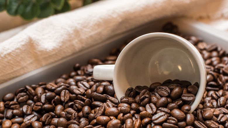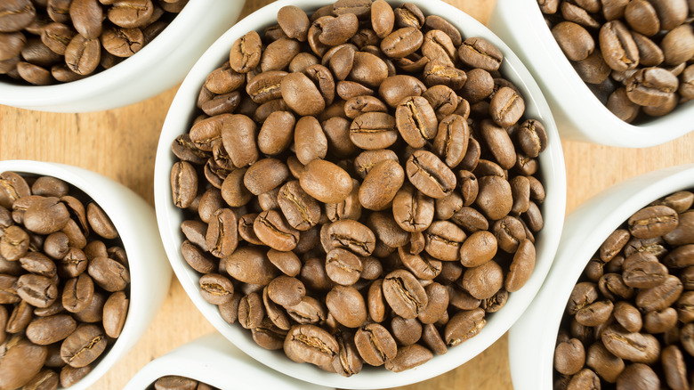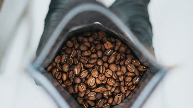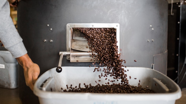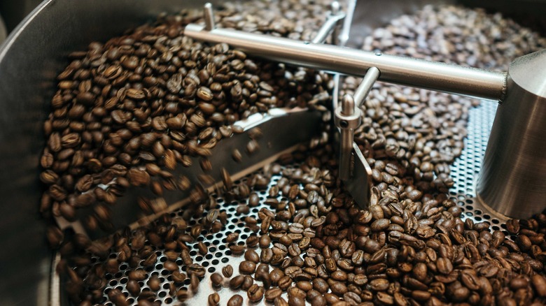 Italy knows a thing or two about coffee, and they prefer theirs roasted dark. We're talking dark dark. Italians have been roasting coffee beans for centuries, first originating in the Venetian Republic where coffee was so beloved that it was blessed by the Pope (via Italian Tribune). Italian roast beans will look purplish-black and greasy, and all of the silverskins will have been cooked away. The coffee plant's natural flavors and terroir are going to be nearly impossible to discern for casual coffee drinkers if they are even still present at all.