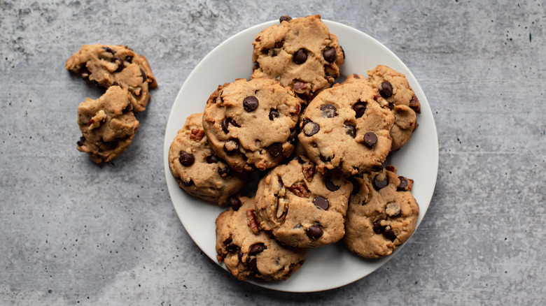 Cookie dough with plenty of fat — specifically butter — is suited for freezing and baking at a later date, according to Kitchn. That means shortbread, like our easy Christmas shortbread, can easily be frozen, which can make holiday baking much less stressful. Pecan Sandies would be another good choice. Another good freezable dough option is drop cookie dough, like these delectable toffee chocolate chip cookies. Sugar cookie dough also freezes well. Food Network explains that sugar cookie dough can be rolled and frozen in sheets or frozen as a ball, to be rolled after thawing.