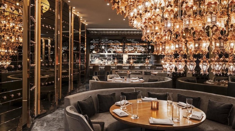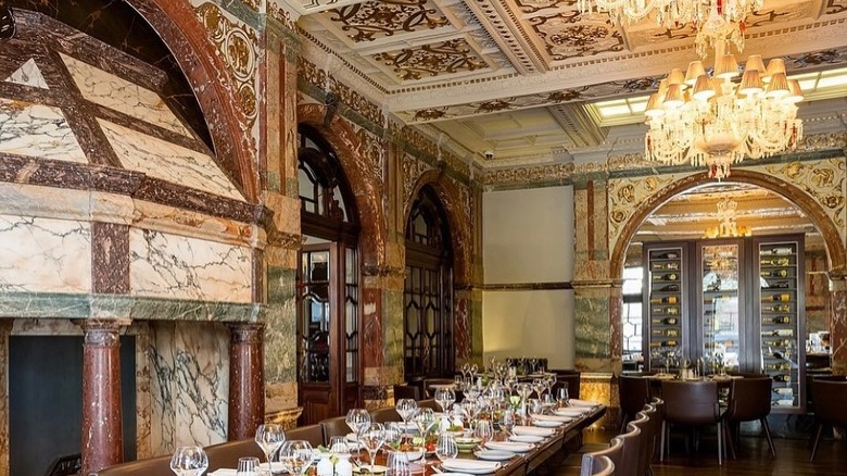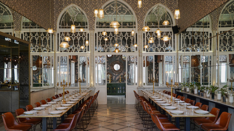 Residing in a gorgeous Grade II-listed building with original marble work and envy-inducing period architectural features in London's St. John's Wood neighborhood, Crocker's Folly is considered one of the city's most beautiful restaurants by Londonist. The decor remains simple and streamlined, allowing the elegance of the building to shine. The dining establishment offers a modern take on Lebanese cuisine and four distinct dining experiences. The 1898 Bar is the perfect place to snag a craft cocktail, while the Lords Dining Room offers an intimate look at the restaurant's cuisine. There is the swoon-worthy Marble Room — an idyllic place for date night — and the outdoor terrace is an excellent place to soak up a warm summer's evening with a collection of hot and cold mezze plates, shawarma meats, and delectable pastries.