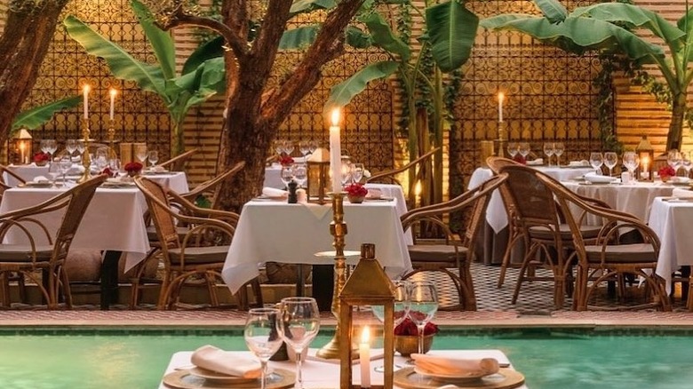 Liza is a Lebanese restaurant with locations on Rue de la Banque in Paris, and in Beirut's haute Achrafieh neighborhood. The Beirut location is a transportive dining destination that The Foodie Diaries considers one of the most beautiful in the world. According to the blog, Liza Beirut is housed on the second floor of the Abdallah Bustros Palace, a 19th-century villa that was transformed by designer Maria Oussemi (via Architectism), and each dining space features its own breathtaking design inspired by contemporary Arabian art, Lebanon's rich food culture, and the restaurant's Parisian roots for one-of-a-kind interiors. Tall doors beckon in natural light, while in another room, sweeping banana leaves create a lush feel. Formerly, the Abdallah Bustros Palace was owned by the Bustroses, a Lebanese aristocratic family and the architecture has been painstakingly preserved.