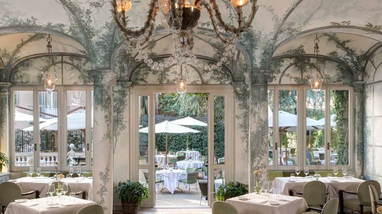 Le Jardin de Russie is located in one of Rome's most storied hotels, Hotel de Russie, which sits just off the Piazza de Popolo in front of the Villa Borghese. The Jardin is a verdant, multi-level secret garden in the center of The Eternal City that's a favorite of the Roman elite (via Fodor's). The cuisine is inspired by the Mediterranean's world-renowned ingredients and culinary traditions, with Michelin-starred chef Fulvio Pierangelini at the head of the operation.