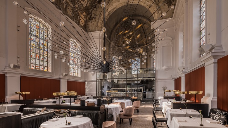 The interiors of The Jane are the brainchild of Dutch design icon Piet Boon and emphasize as many of the building's original features as possible. Wallpaper reports that the restaurant's dramatic stained windows were designed by local firm Studio Job, which further emphasizes the chefs' notion of food as a religion. The light fixture hovering over the dining room bursts from one fixed point and extends wildly in all directions, as the desire to discover good food does. Guests will surely get a taste of that passion for food, as Michelin Guide says Bril will introduce guests to "mind-blowing flavors." The Jane is open for lunch and dinner Thursdays through Sundays.