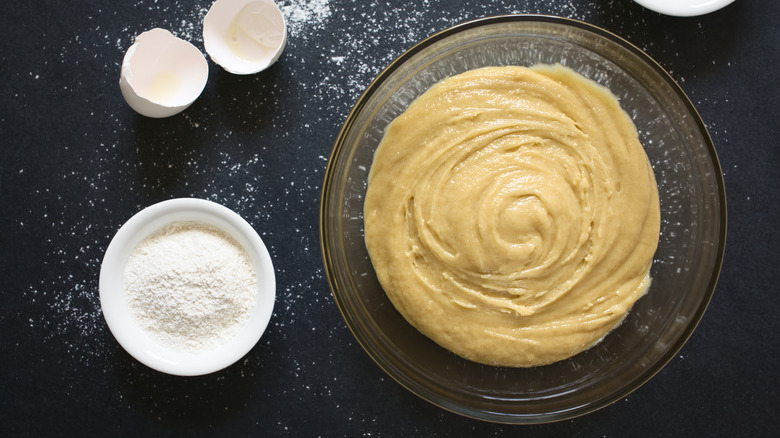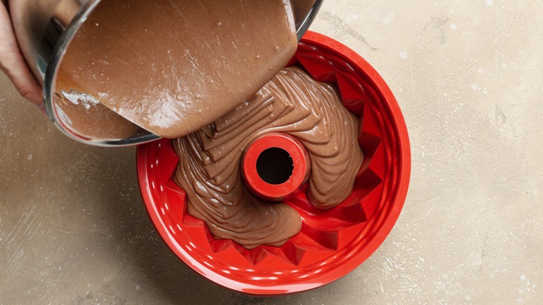 What does it mean to tap it out? Well, after you've poured your delicious batter into your baking pan, take hold of the pan in both hands and gently tap the bottom against the counter a few times (via Southern Living). According to Bake School, this process will not only force the larger trapped air bubbles out of the batter but also allows the batter to fill all those nooks and crannies in the pan as well. Mixing your batter and pouring it into a pan will always cause air bubbles to form, especially in light and airy batters. Some cakes will collect big, unnecessary air pockets when mixing the batter, so just give your pan a few soft taps on the counter to help the texture come out moist and cakey, just how it's supposed to be!
