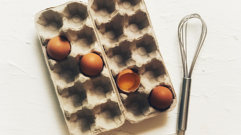 It may surprise you to know that you likely have a few simple shelf-stable ingredients on hand that can be swapped out for the eggs in your baking recipe. When a recipe calls for a whole egg (the white and the yolk), it's being used to bind ingredients together, such as sugar and flour (via Baker Bettie). They also make the baked goods softer and moist, giving them an "eggy" taste.