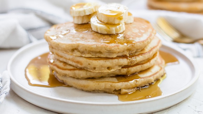 While some people might prefer a quick bowl of cereal or a hearty plate of bacon and eggs for breakfast, those with a sweet tooth tend to gravitate towards soft stacks of pancakes or thick, crisp Belgian waffles. Whether you slather them with syrup, adorn them with chocolate chips and whipped cream, or scatter fresh berries on top, there's no denying that pancakes can be a delicious way to start the day. Perhaps you tend to default to grocery store pancake mix, and maybe you've never considered but these sweet stacks are a simple and tasty way to add a fruit-filled twist to your morning.